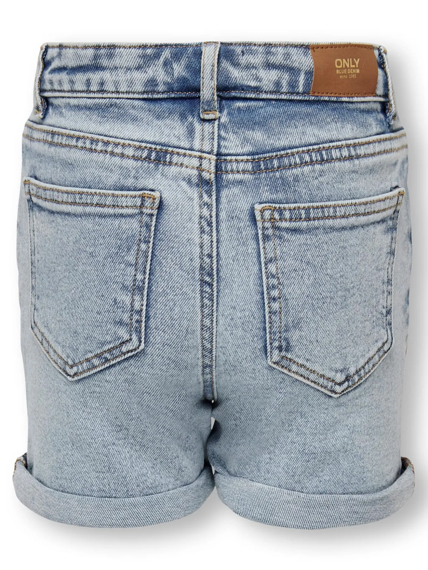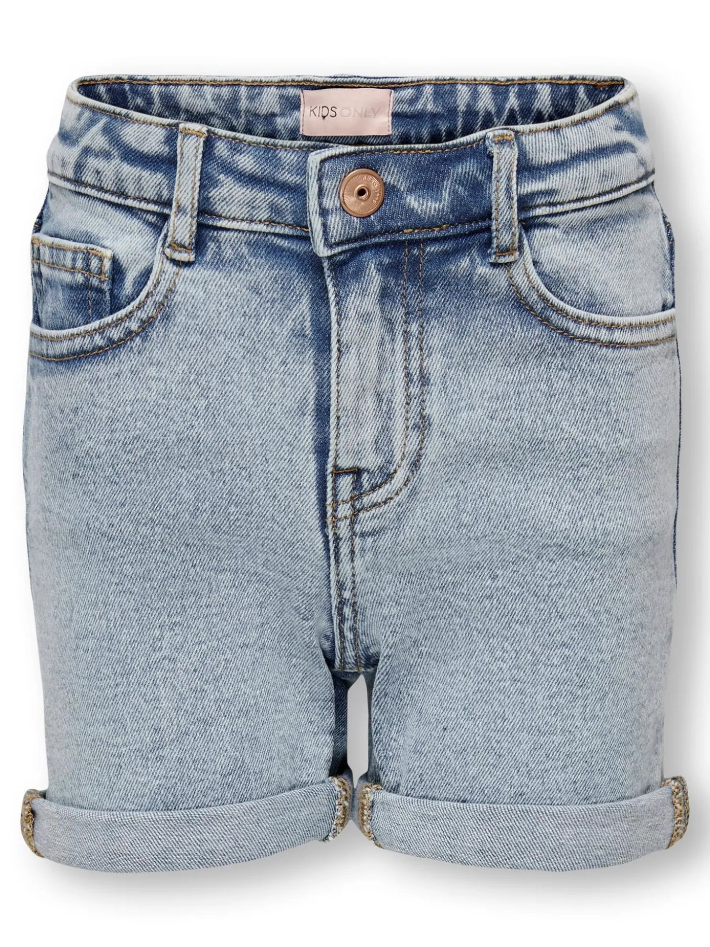 Lichtblauw denim shortje voor de meiden van het merk Kids Only. Jeans shorts zijn eigelijk onmisbaar in ieder zijn garderobe, ze zijn eindeloos te combineren! Dit item is voorzien van een rits- en knoopsluiting en vijf pockets. Het item heeft riemlussen en bevat lekker veel stretch.
