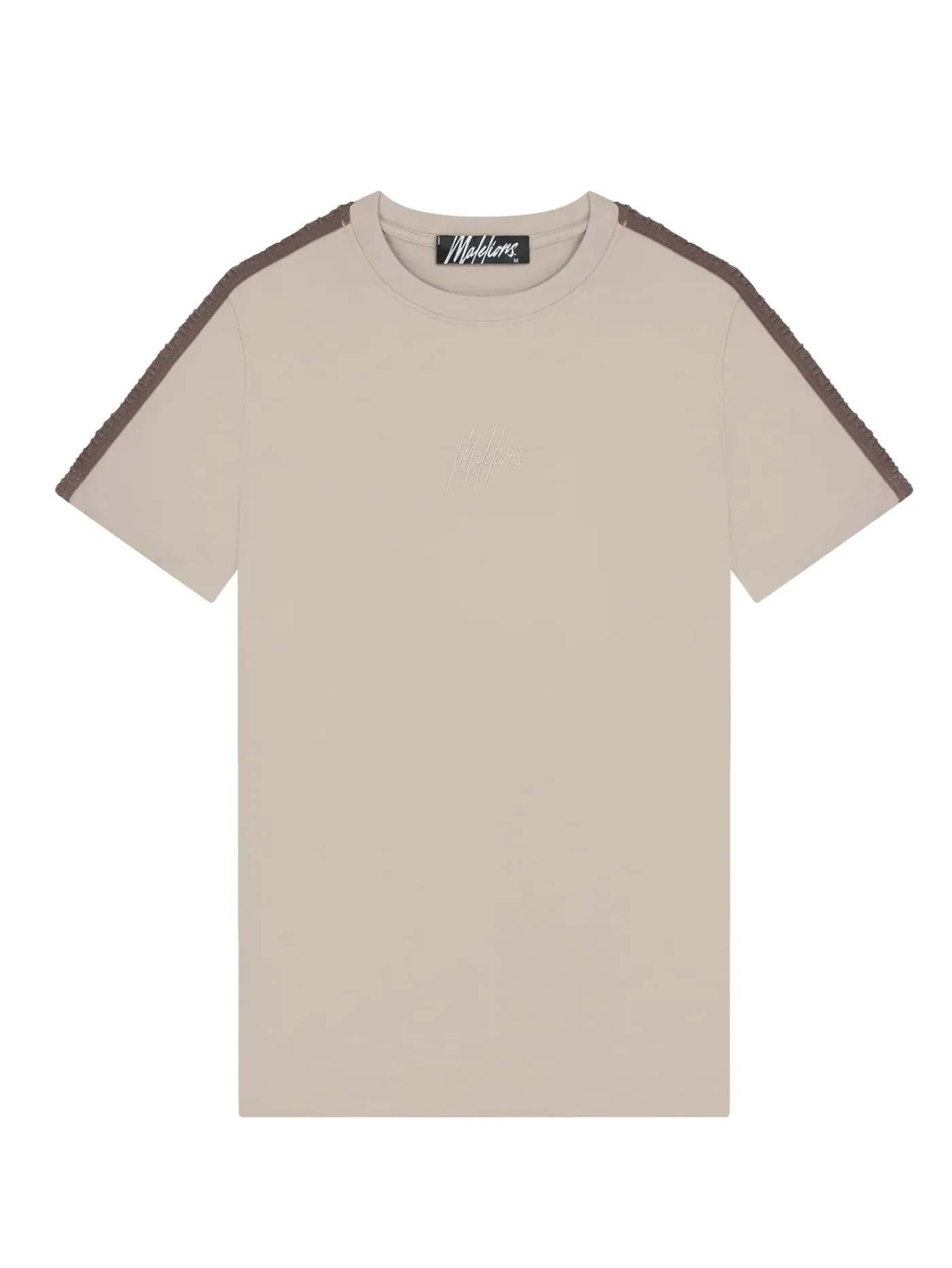 Dit lichtbruine t-shirt van Malelions is gemaakt van zacht katoen. Het shirt heeft korte mouwen, een ronde hals, en heeft een klein logo op de borst. Op de schouders van het shirt zit een bruine logostreep. Het t-shirt is makkelijk te combineren met bijvoorbeeld een spijkerbroek.