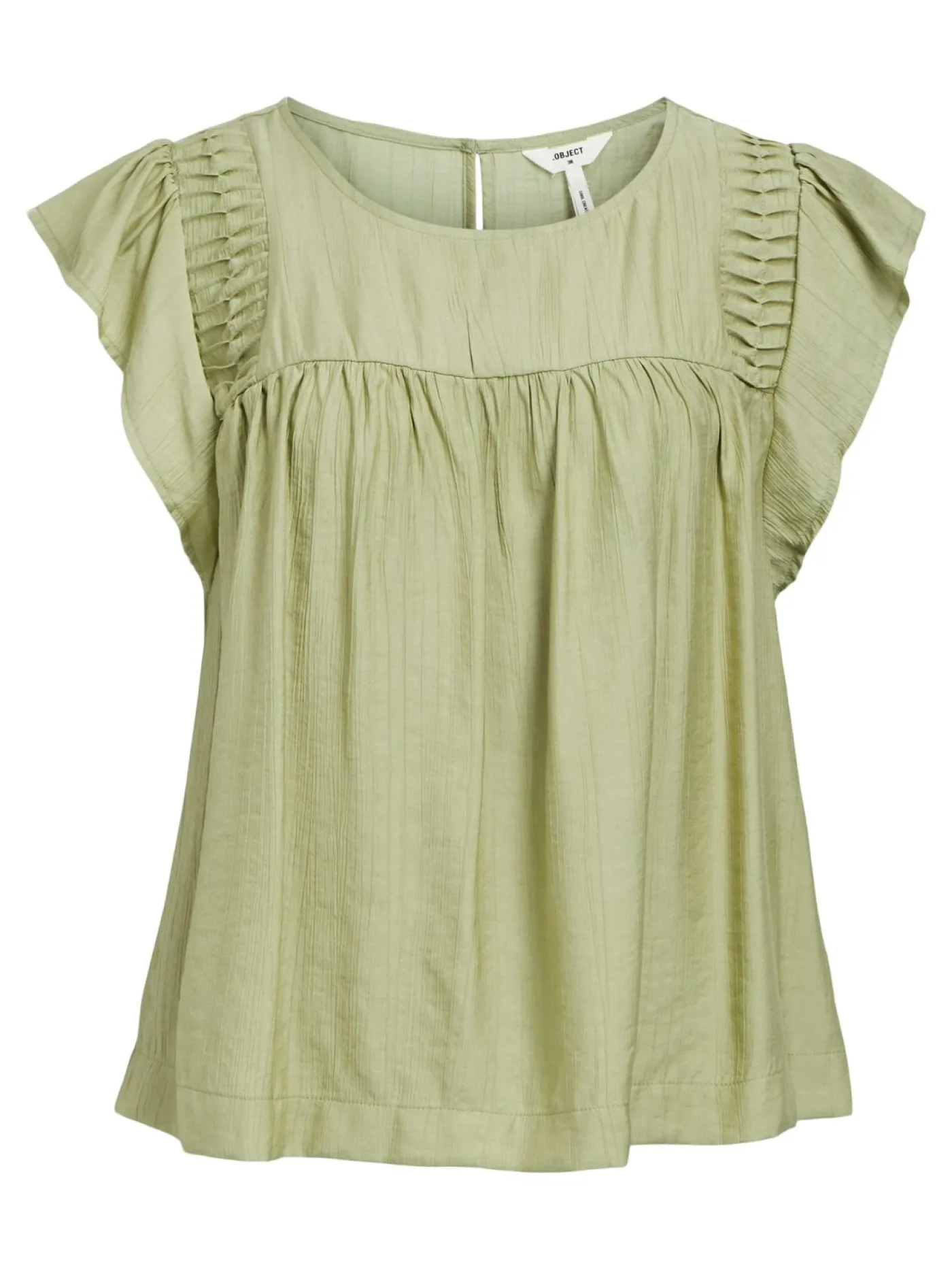 Vrolijke blouse van het merk Object. De blouse heeft korte kapmouwtjes en een structuur op de schouders. Verder sluit de blouse achteraan met een knoopje. Leuk te combineren met een jeans of korte broek!