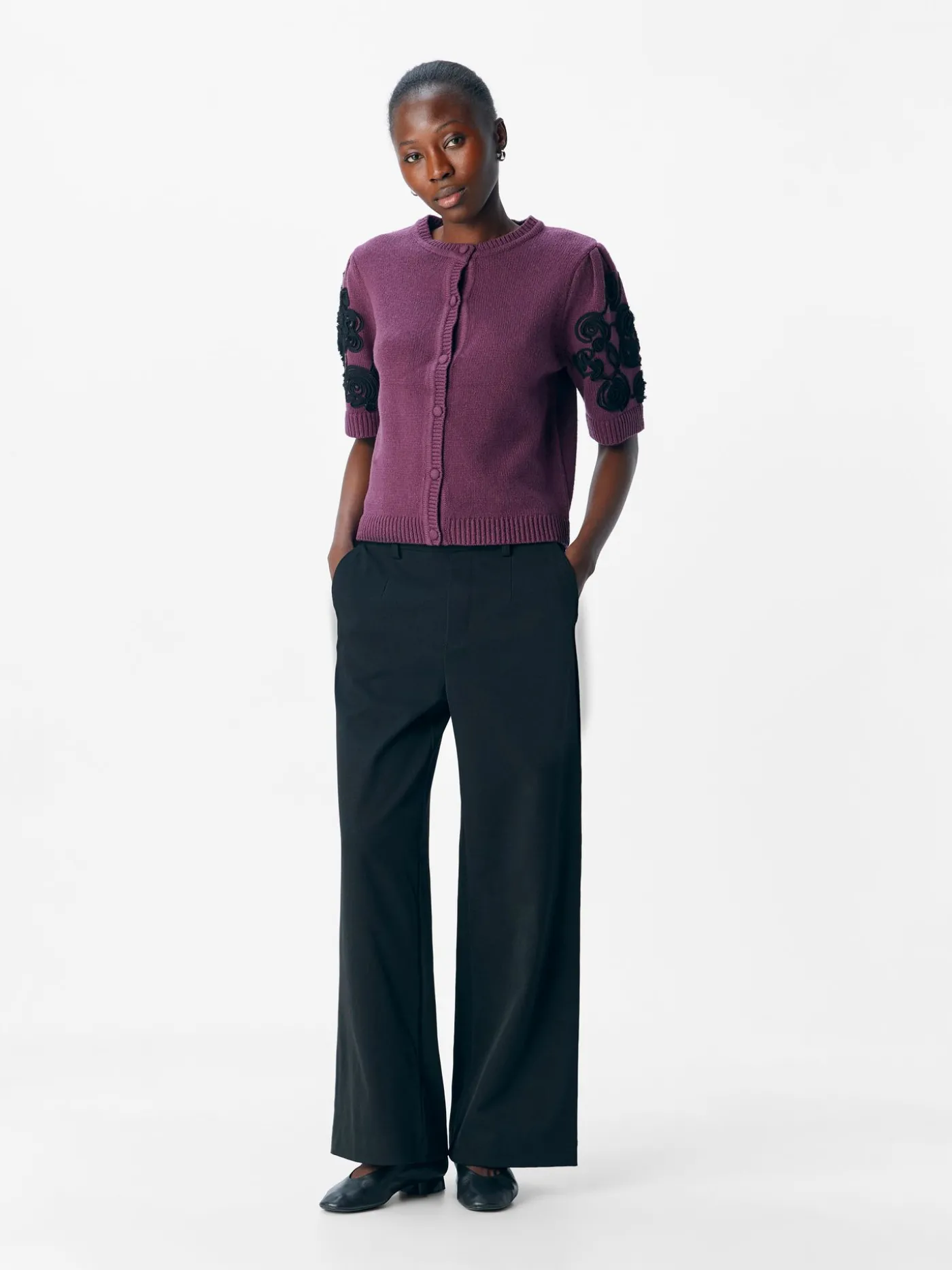 Dit paarse shirt voor dames heeft halflange mouwen en een comfortabele regular fit. Op de mouwen zijn zwarte rozen verwerkt, wat een speels en stijlvol accent geeft aan het shirt. Het zachte materiaal zorgt voor optimaal draagcomfort, ideaal voor dagelijks gebruik of een casual-chique look. Combineer het met jeans, rok of pantalon voor een complete outfit.