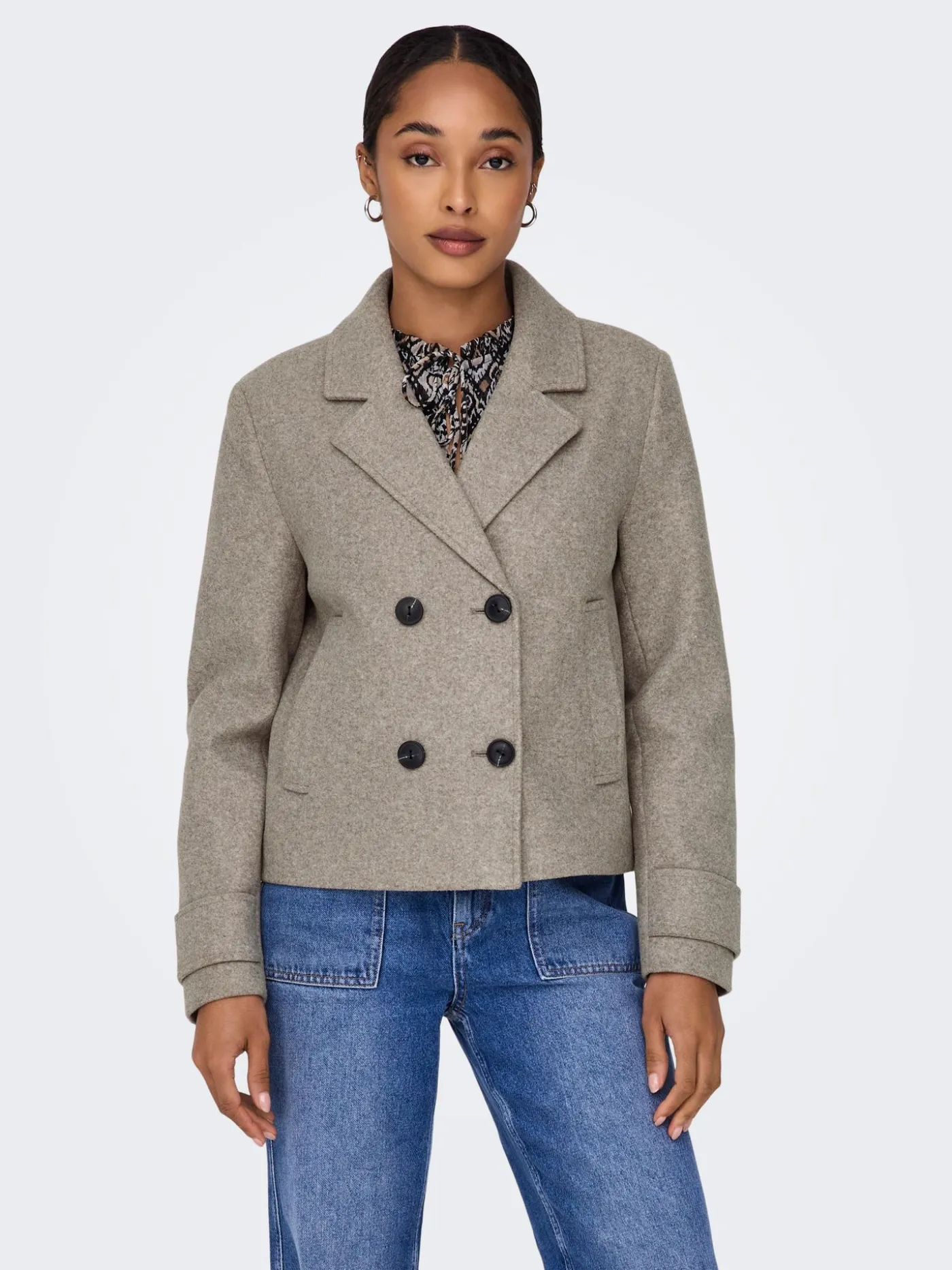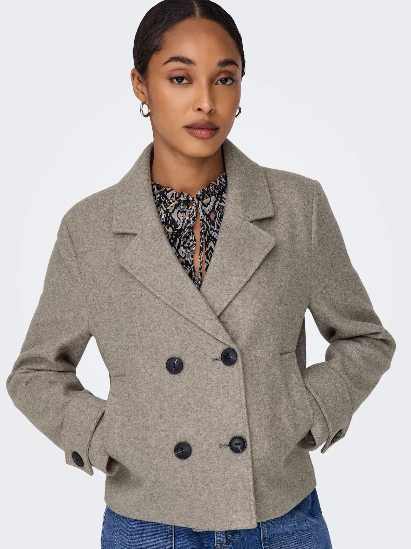 Deze korte mantel van ONLY in een grijstint is perfect voor het tussenseizoen. Hij heeft een nette reverskraag, lange mouwen en valt boven de heup, wat ‘m zowel stijlvol als praktisch maakt. De knoop‑ en ritssluiting geeft een verzorgd uiterlijk, en door de regular fit zit hij comfortabel zonder strak te zijn. Een slimme keuze voor dagelijks gebruik wanneer je er warm en netjes uit wilt zien.
