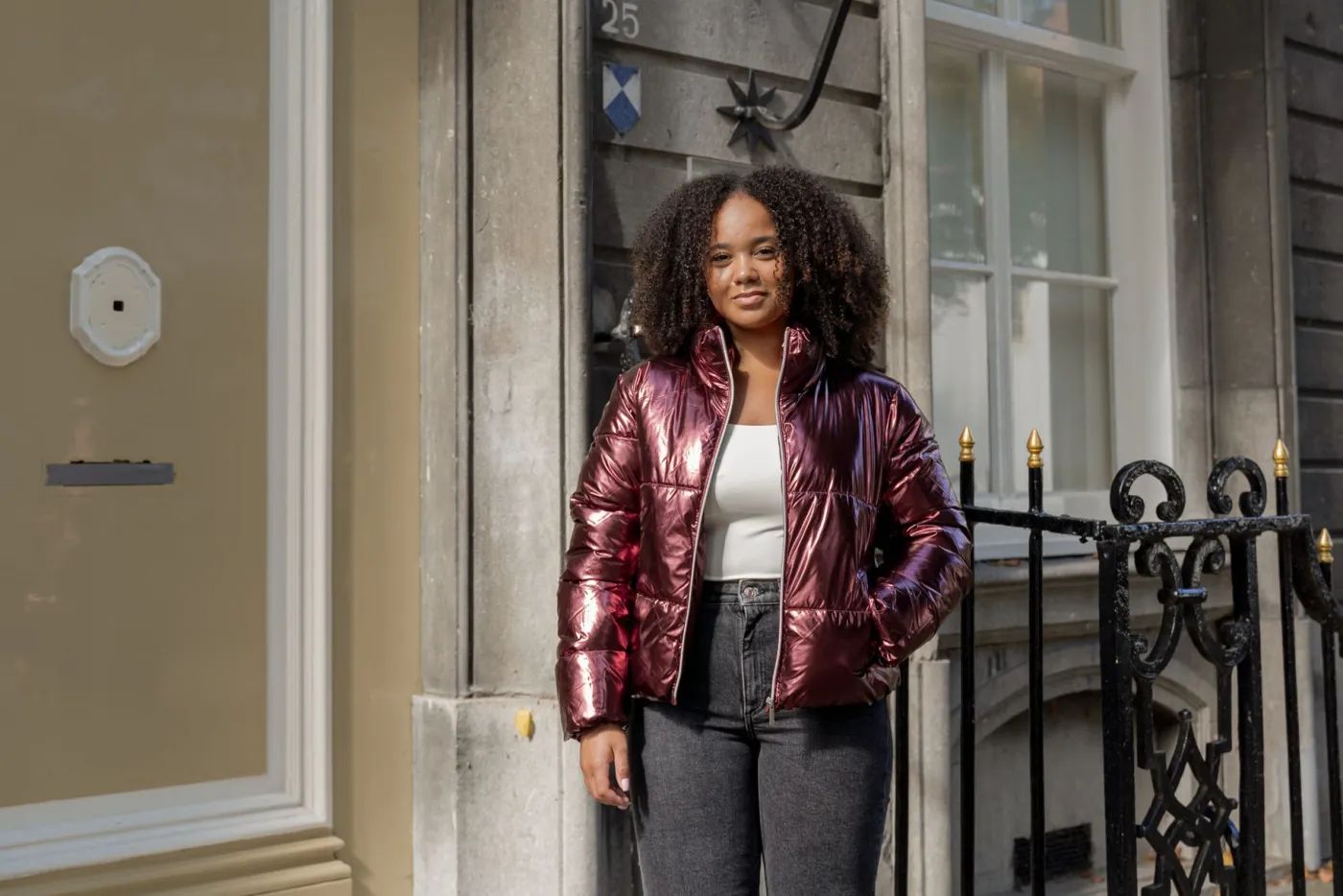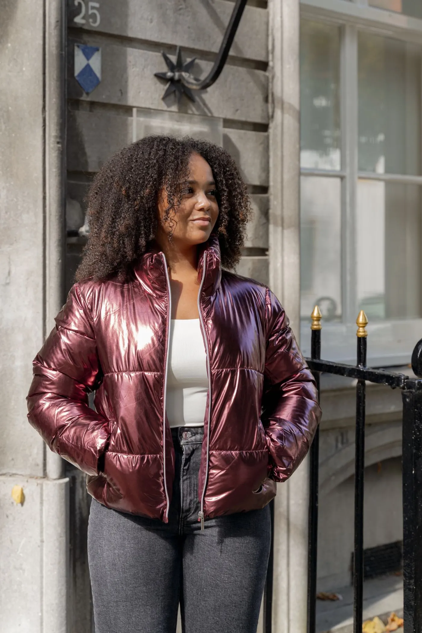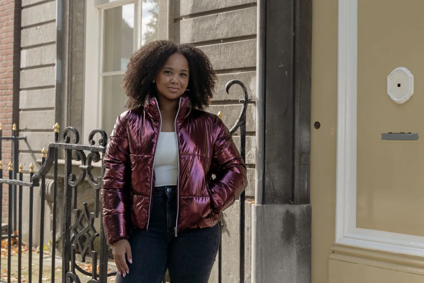 Een stijlvolle, gewatteerde damesjas met een capuchon, lange mouwen en een ritssluiting. Uitgevoerd in een diepe cabernetkleur, wat zorgt voor een elegante uitstraling. De jas is voorzien van een synthetische voering die zorgt voor extra warmte tijdens koude dagen. Ideaal voor dagelijks gebruik in de herfst- en wintermaanden.