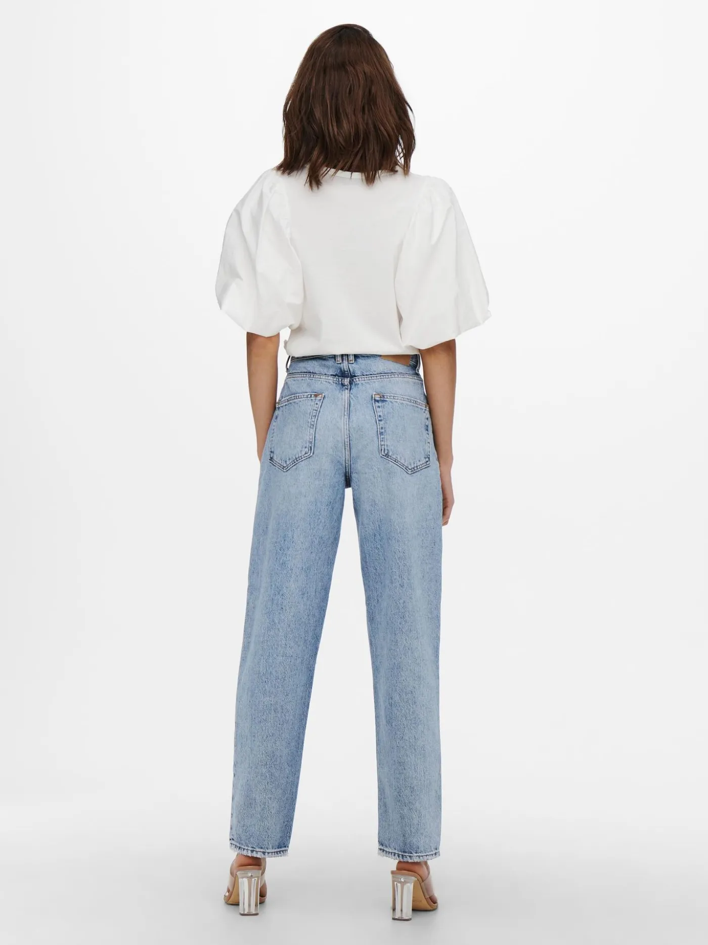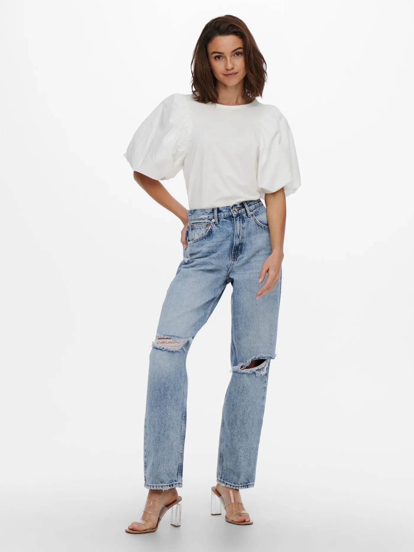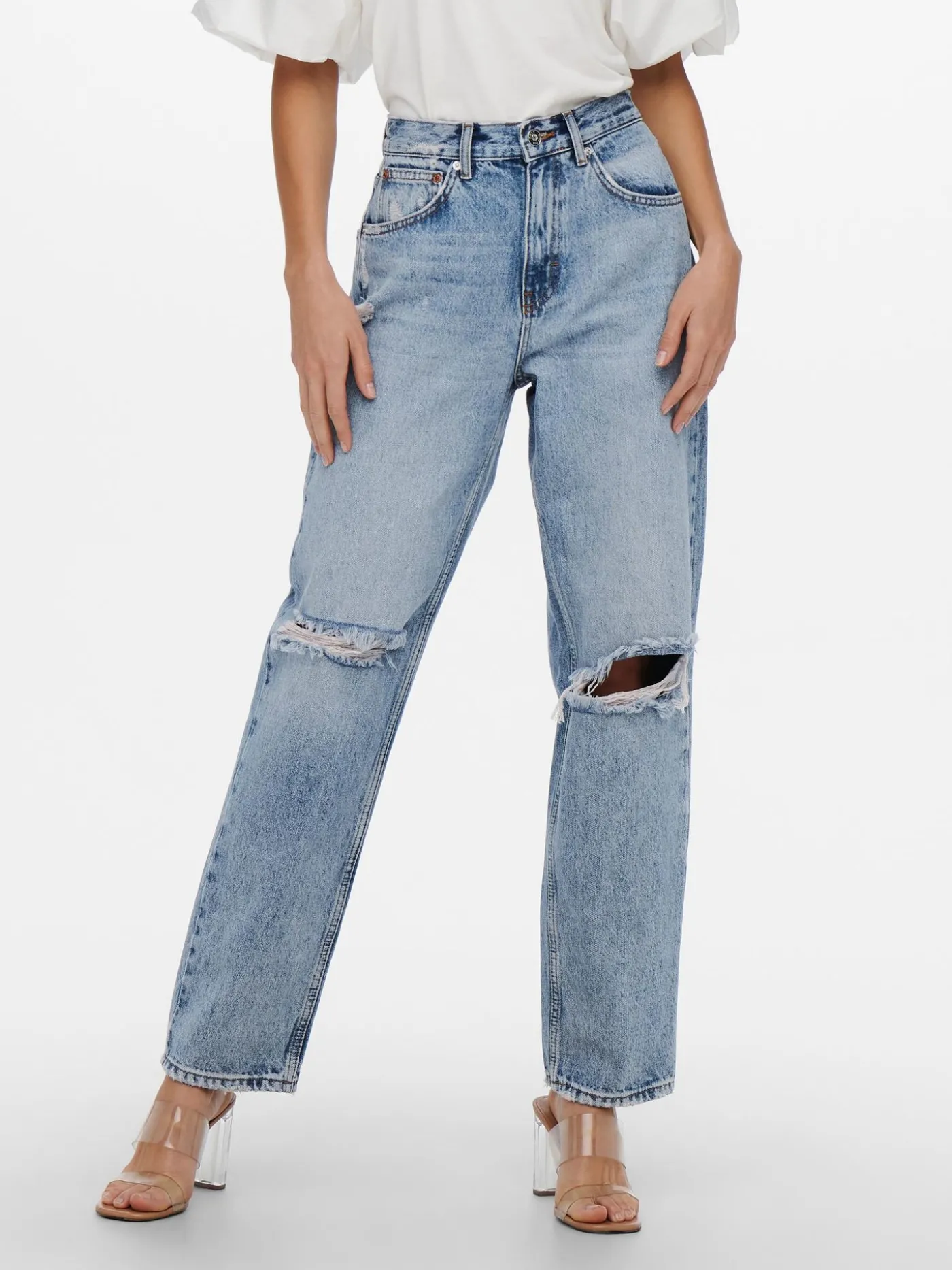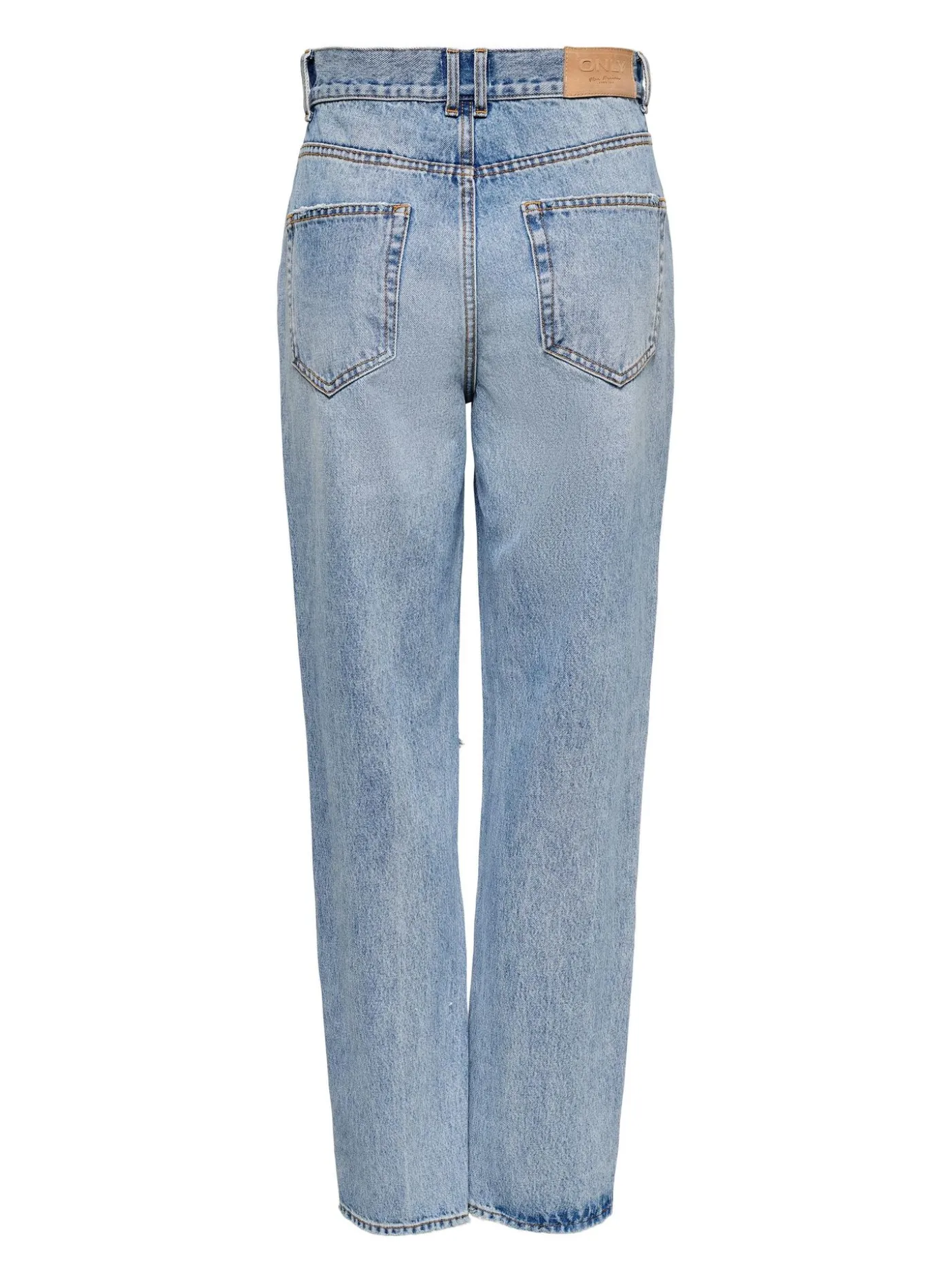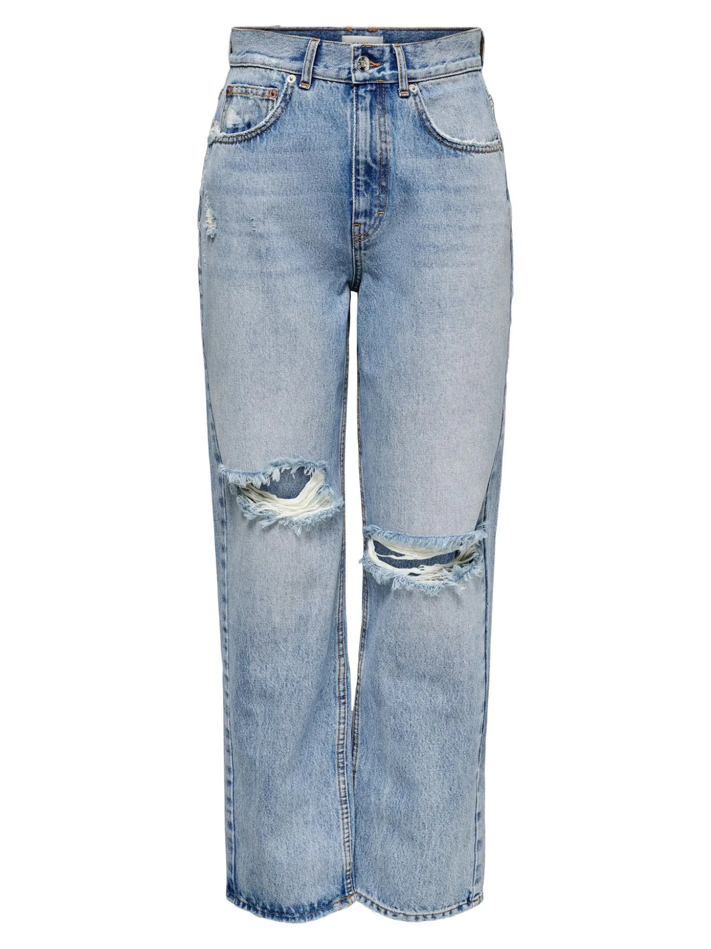 Straight fit jeans van het merk Only. Deze jeans is blauw met een lichte wassing en voorzien van kniescheuren. De jeans heeft een rits- en knoopsluiting en riemlussen. Een toffe jeans welke eindeloos gecombineerd kan worden.