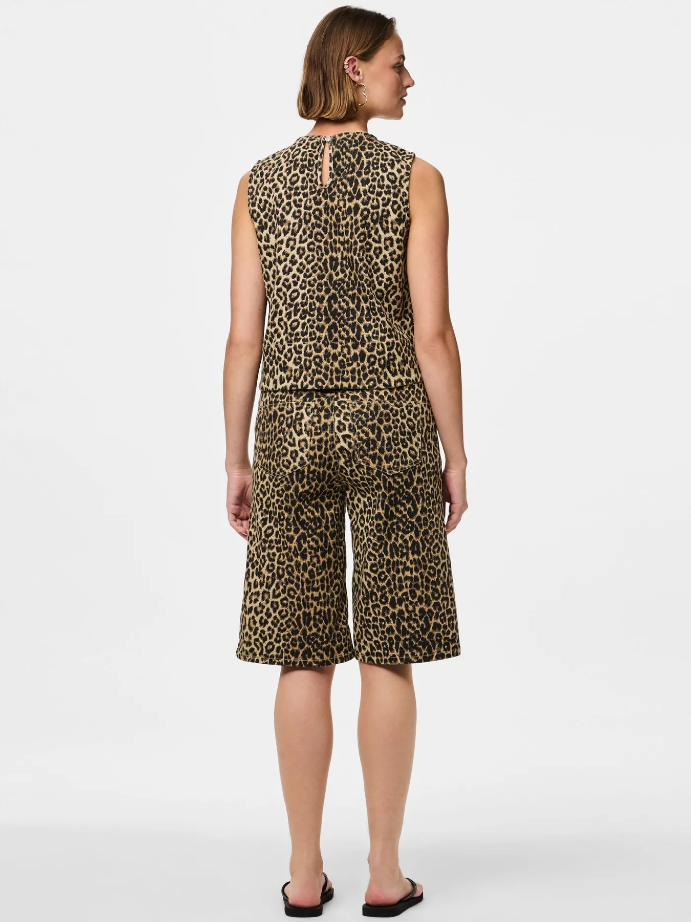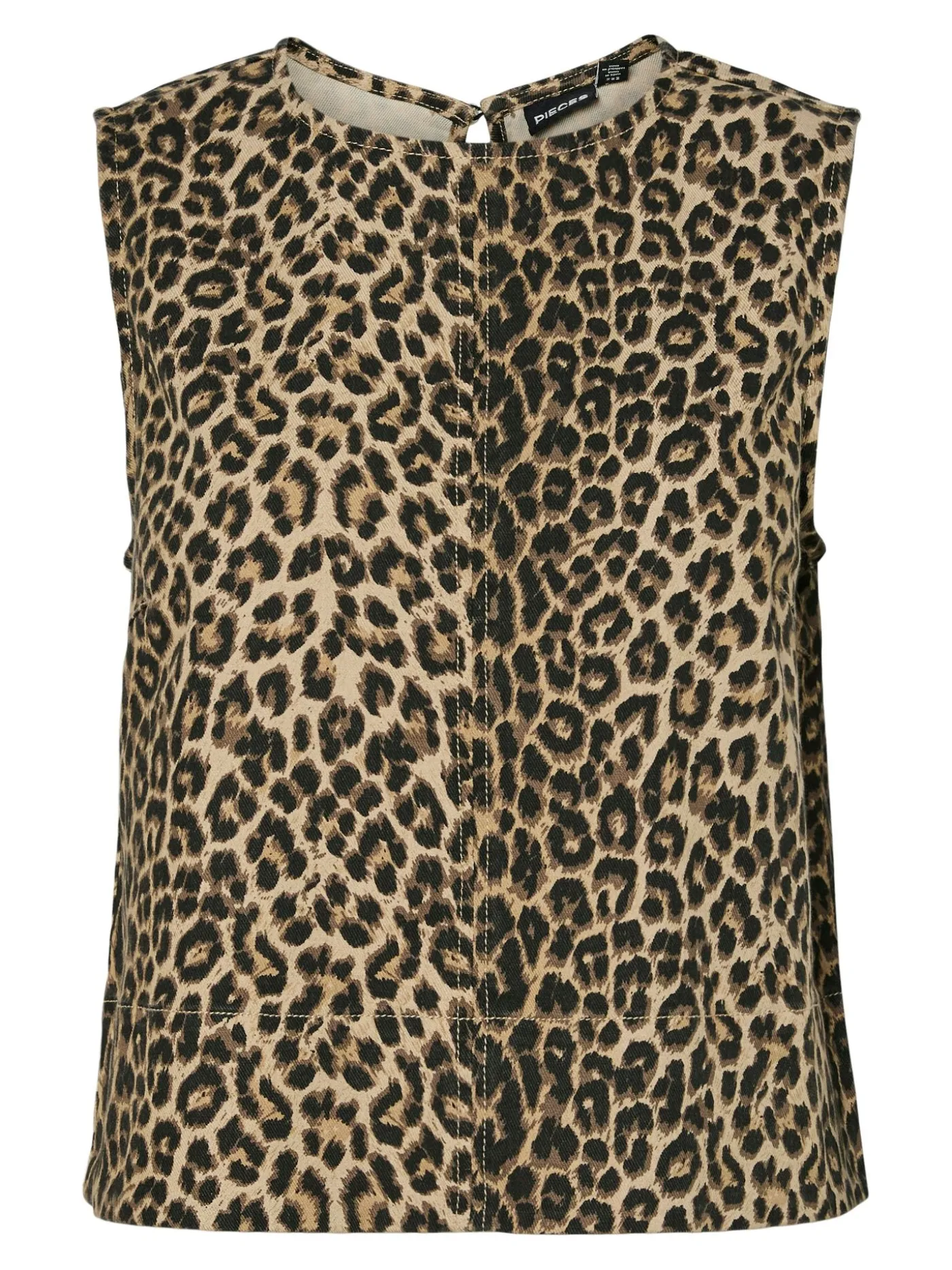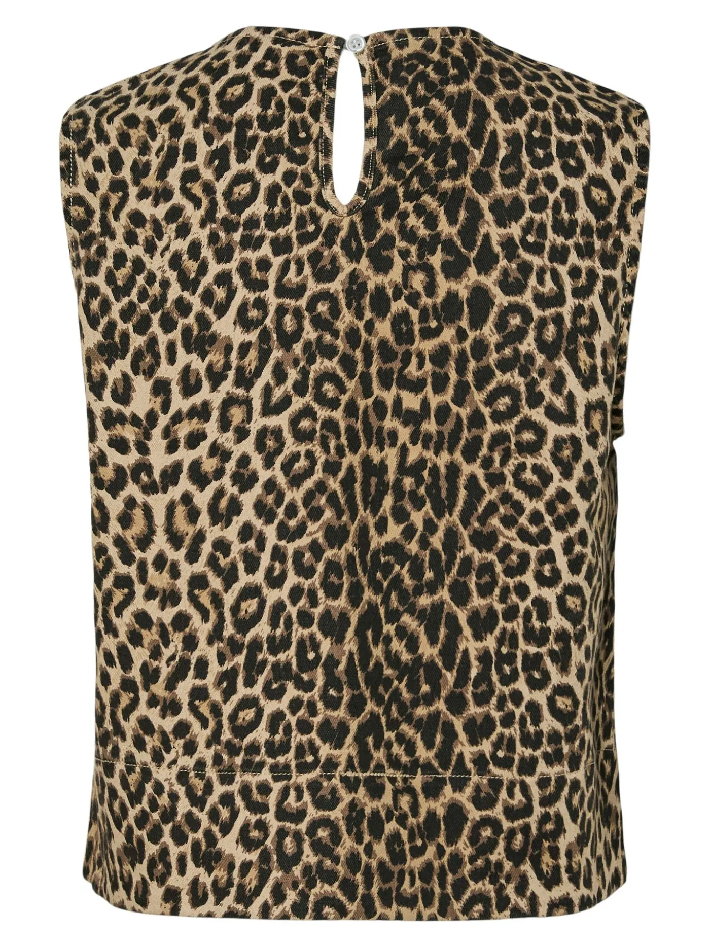 Deze super toffe top van spijkerstof, heeft een all-over panterprint en een knoopsluiting op de rug. De top valt wat losser en er zit stretch in voor een comfortabele fit. Combineer deze top met een witte pantalon of een wide leg spijkerbroek voor een complete look!