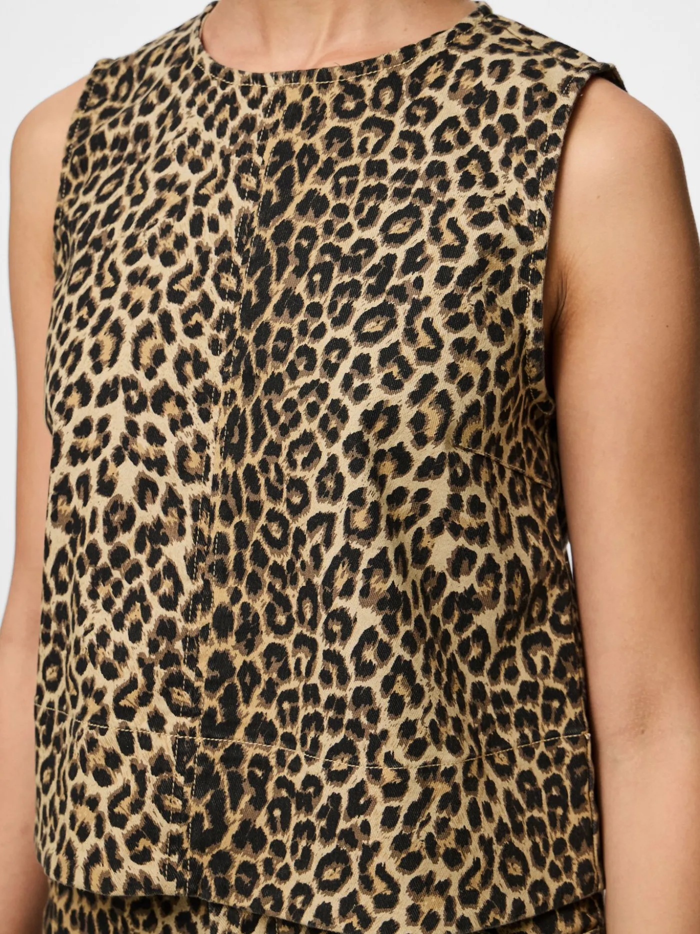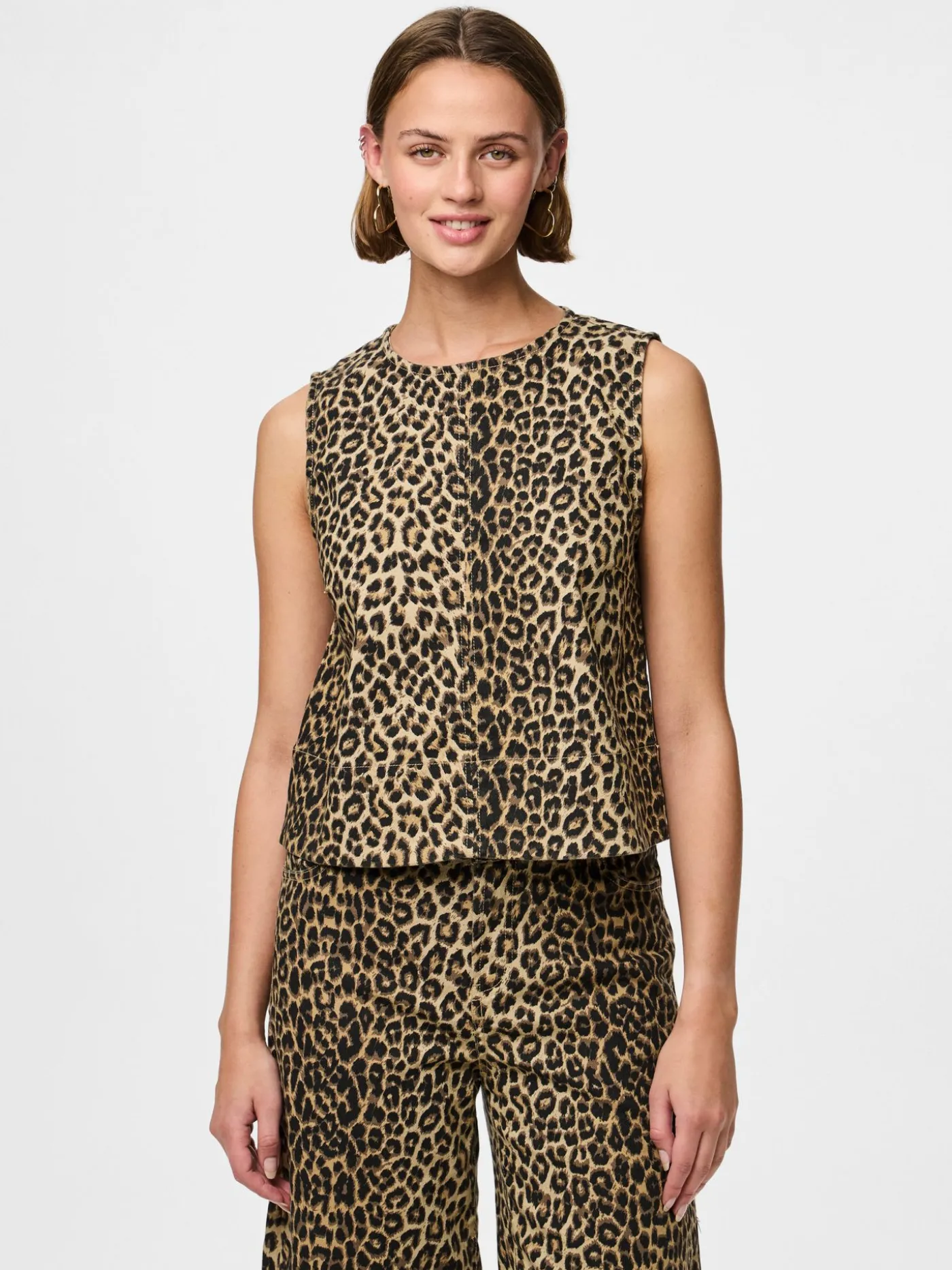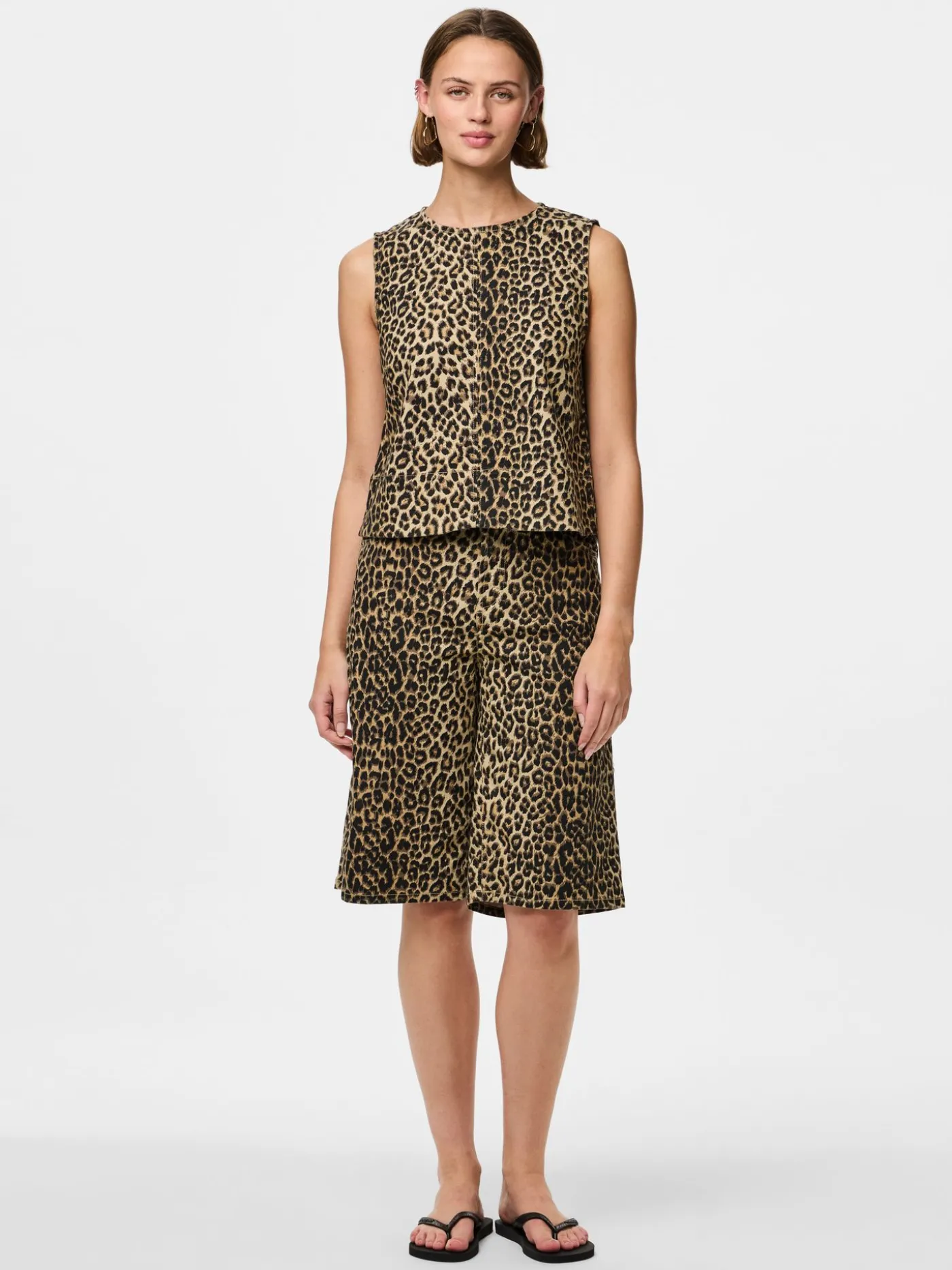 Deze super toffe top van spijkerstof, heeft een all-over panterprint en een knoopsluiting op de rug. De top valt wat losser en er zit stretch in voor een comfortabele fit. Combineer deze top met een witte pantalon of een wide leg spijkerbroek voor een complete look!