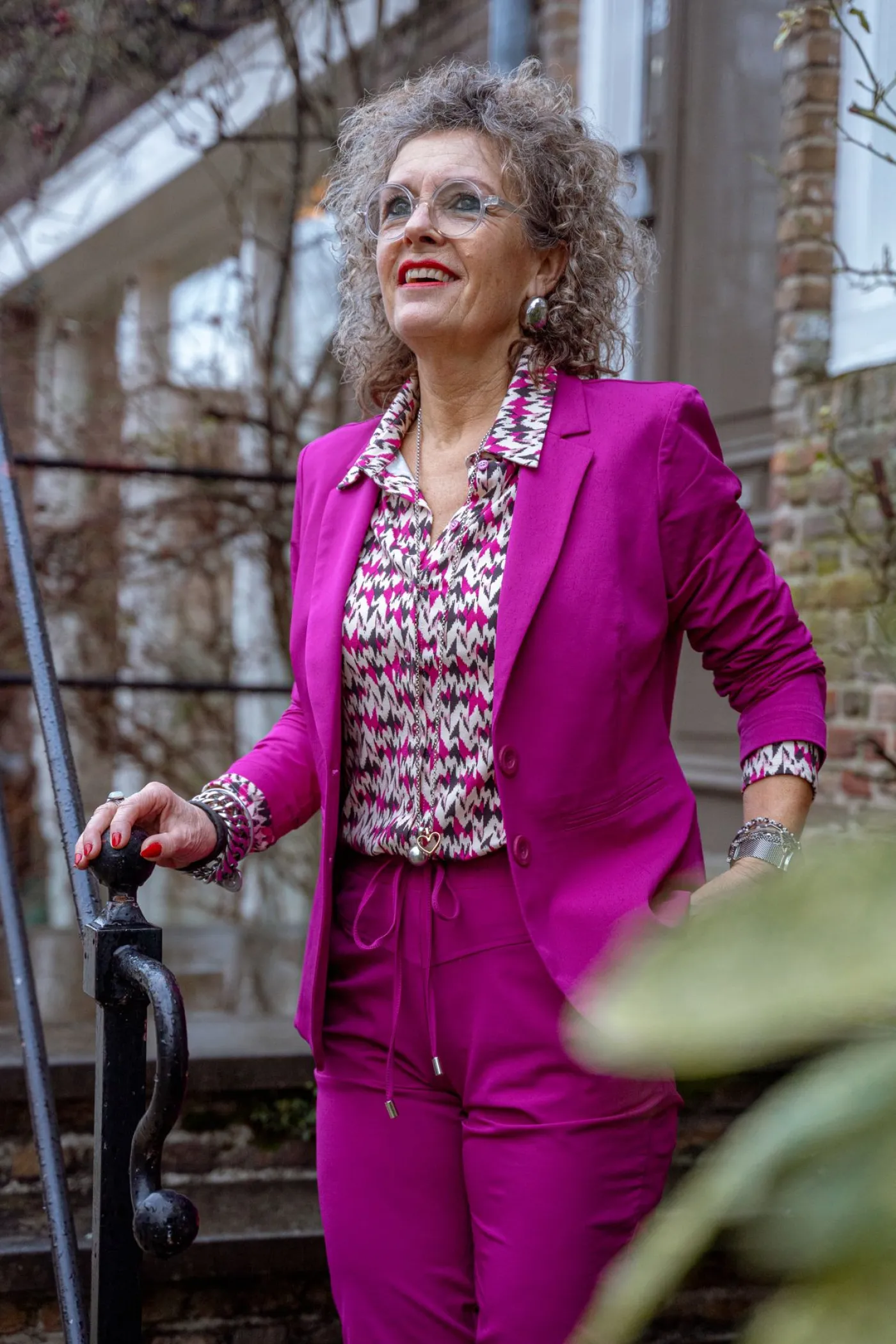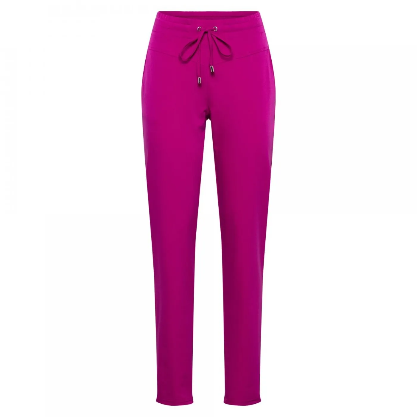 Mode en comfort zijn bij het kledingmerk &Co Woman erg belangrijk! Deze Penny broek is tijdloos en in die kleur een echte must-have voor iedere modebewuste vrouw. Het model heeft een elastische tailleband met strikceintuur in de taille, bestaat uit travelstof dus kreukt niet en valt op maat. Daarnaast heeft de broek steekzakken voor en opgestikte zakken met klep achter.