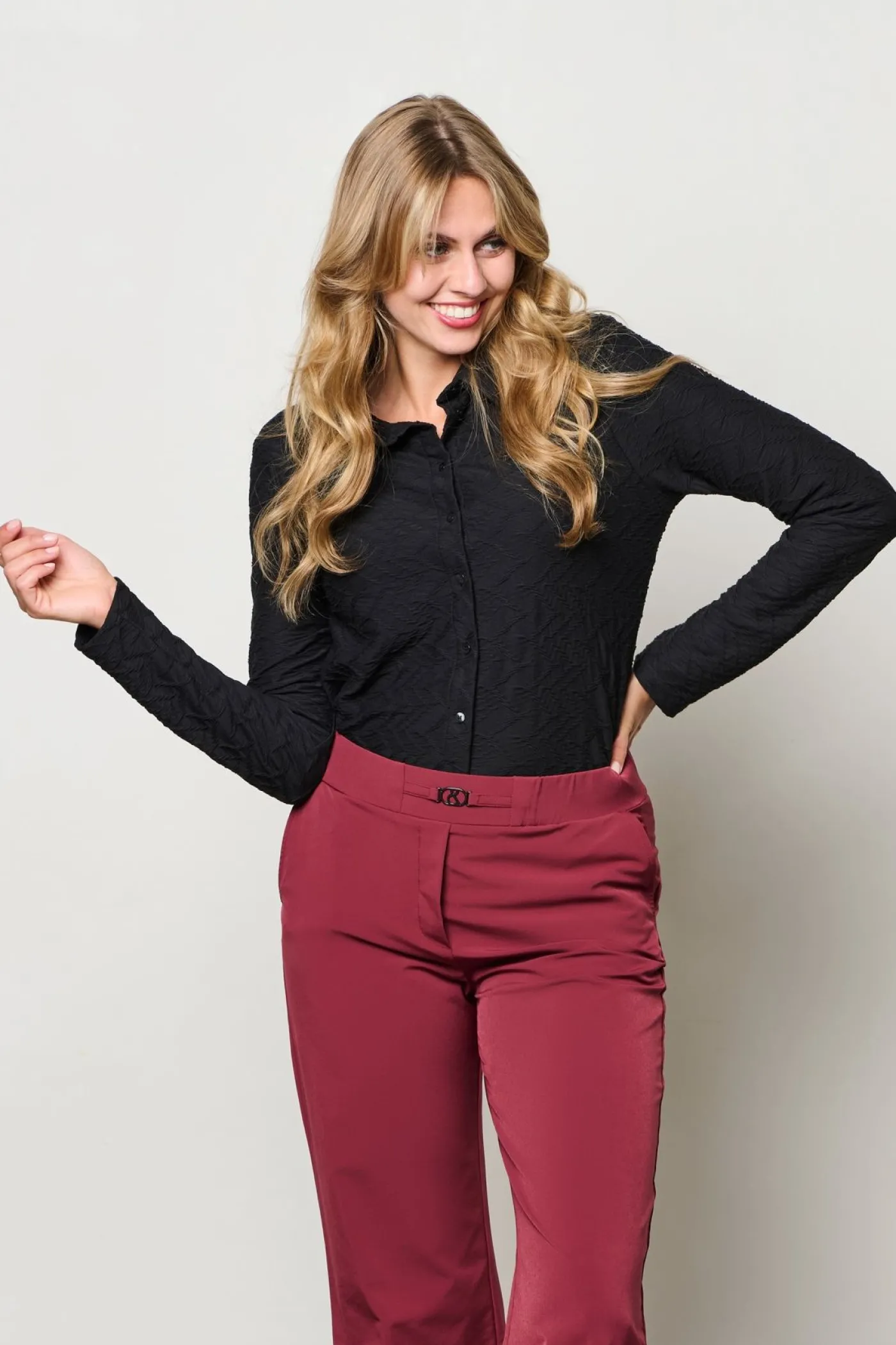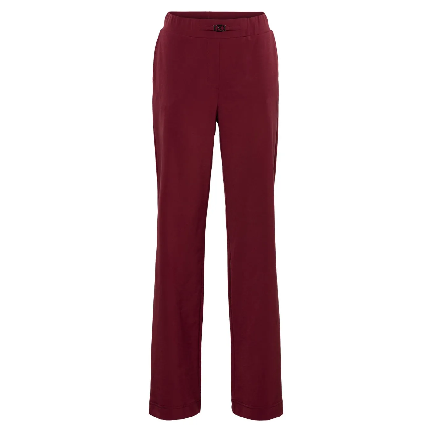 Deze effen rode pantalon van &Co Woman is een frisse toevoeging aan je collectie. Dankzij de elastische taille zit hij comfortabel en sluit hij mooi aan. De rechte pijpen geven de broek een tijdloze en nette uitstraling. Gemaakt van een zachte, soepele stof die fijn draagt, de hele dag door. Combineer ‘m makkelijk met een basic top of een blouse voor een kleurrijke, verzorgde look