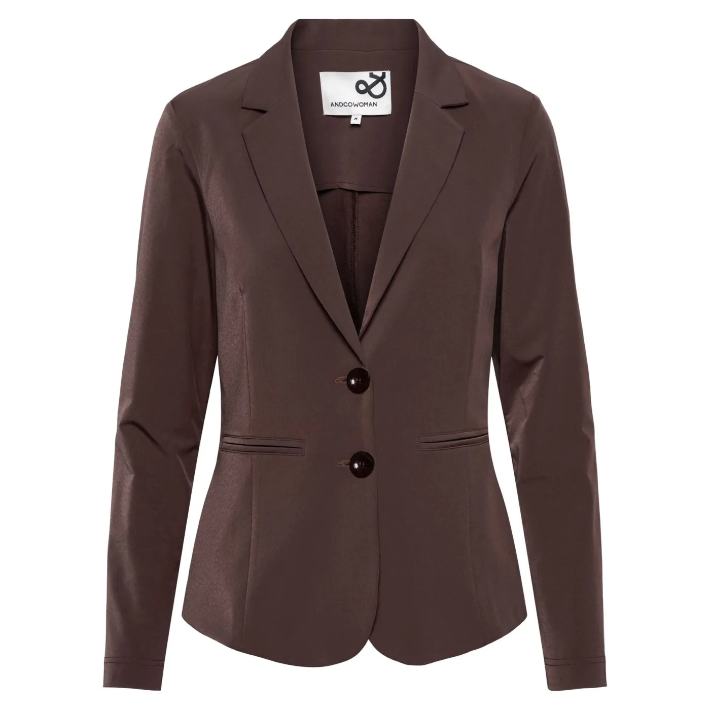 Deze chocolate kleurige blazer van &Co Woman is een elegante toevoeging aan je garderobe. Het strakke ontwerp en de hoogwaardige stof zorgen voor een perfecte pasvorm en een verfijnde uitstraling. Draag hem over een blouse voor een zakelijke look, of combineer met een top en jeans voor een stijlvolle casual outfit. De chocolate kleur geeft iedere outfit een chique en moderne touch. Een veelzijdig item dat je keer op keer kunt dragen.