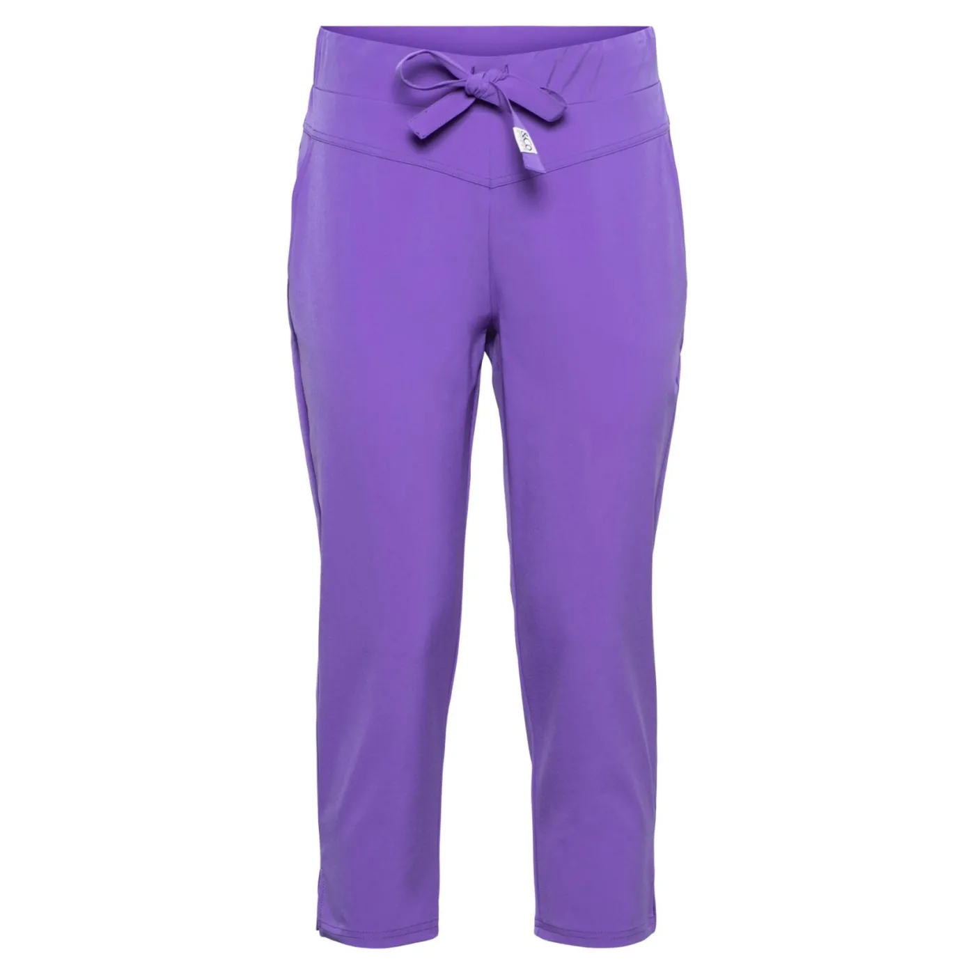 Deze capri broek van het merk &Co Woman is uitgevoerd in een travel-kwaliteit. De broek heeft een strikkoord, 2 steekzakken aan de voorkant en 2 sierzakken aan de achterkant. De broek heeft een splitje aan de onderkant wat een leuk effect geeft.