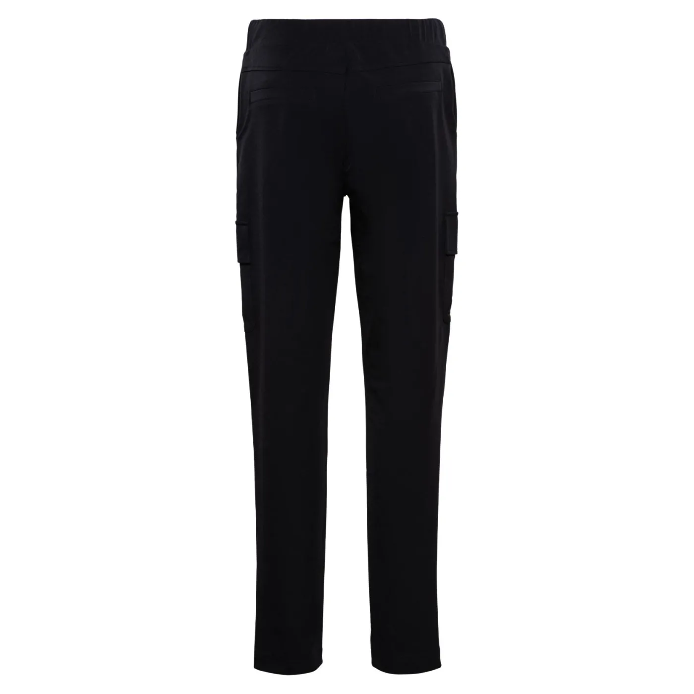Deze leuke broek van travelstof is van de nieuwe collectie van &Co Woman. De broek heeft twee steekzakken aan de voorkant en klepzakken aan de zijkant van de broekspijpen. De broek heeft een elastische taille band en een trekkoord om de broek strakker te maken. Je kunt deze broek combineren met het Sybil t-shirten de zwartePhileine travelblazer voor een complete look van &Co Woman.