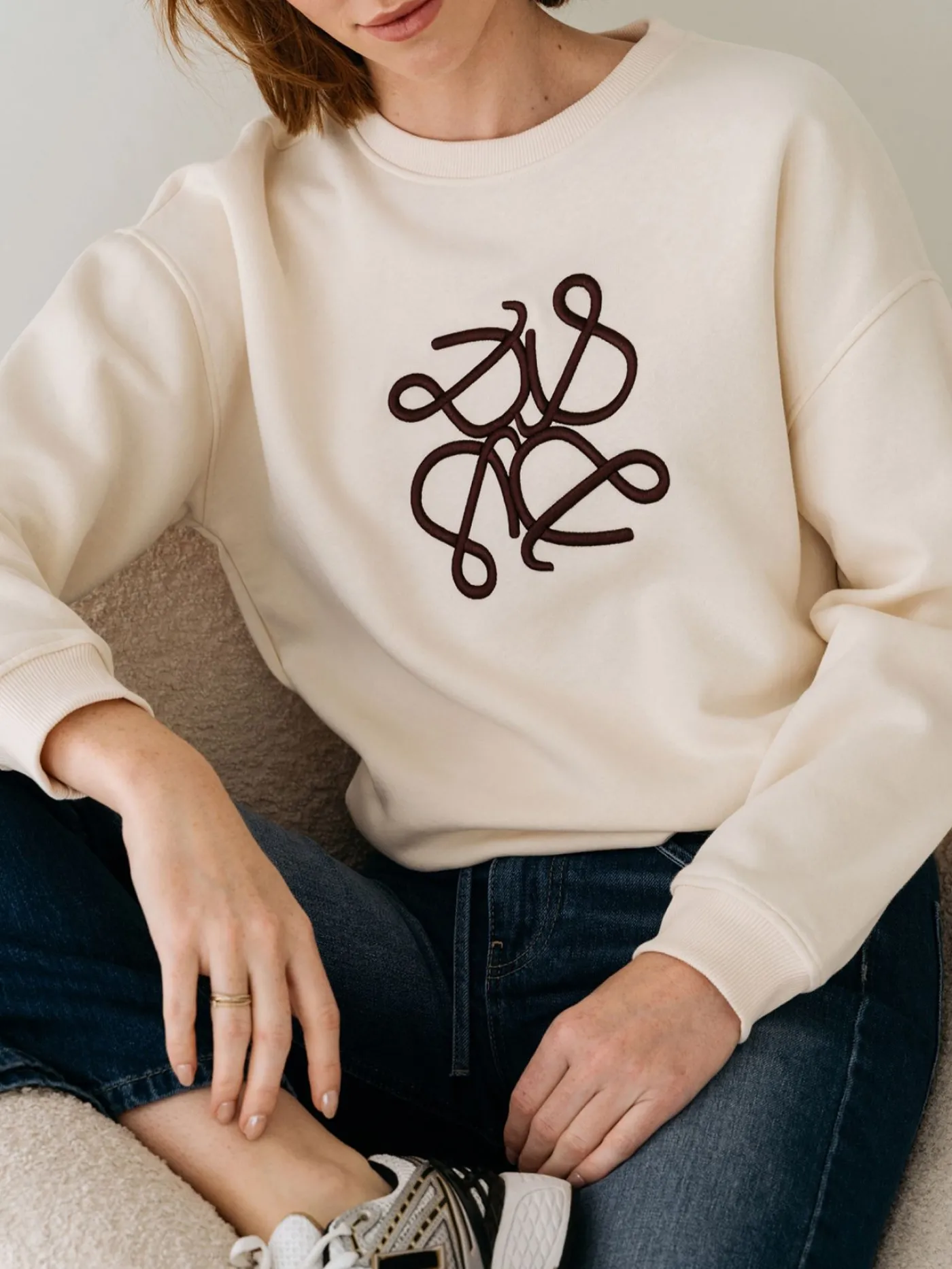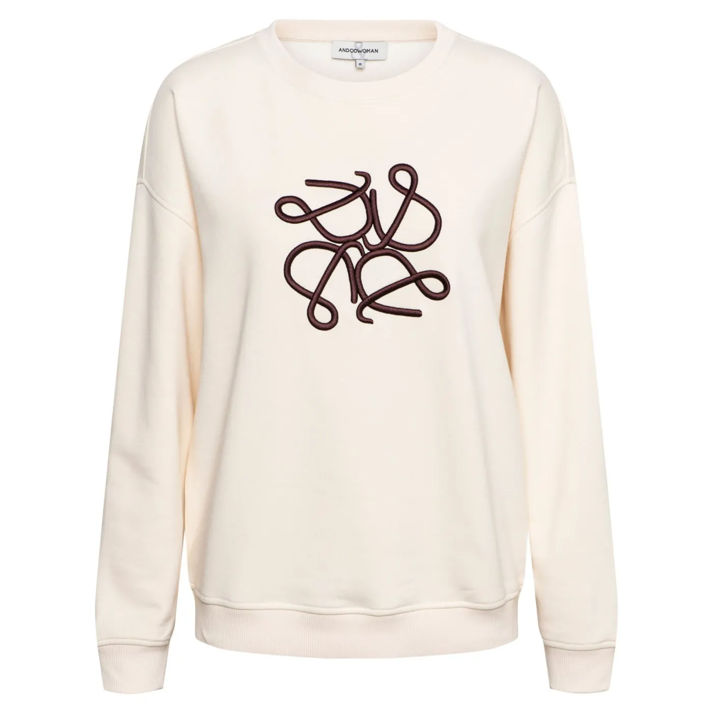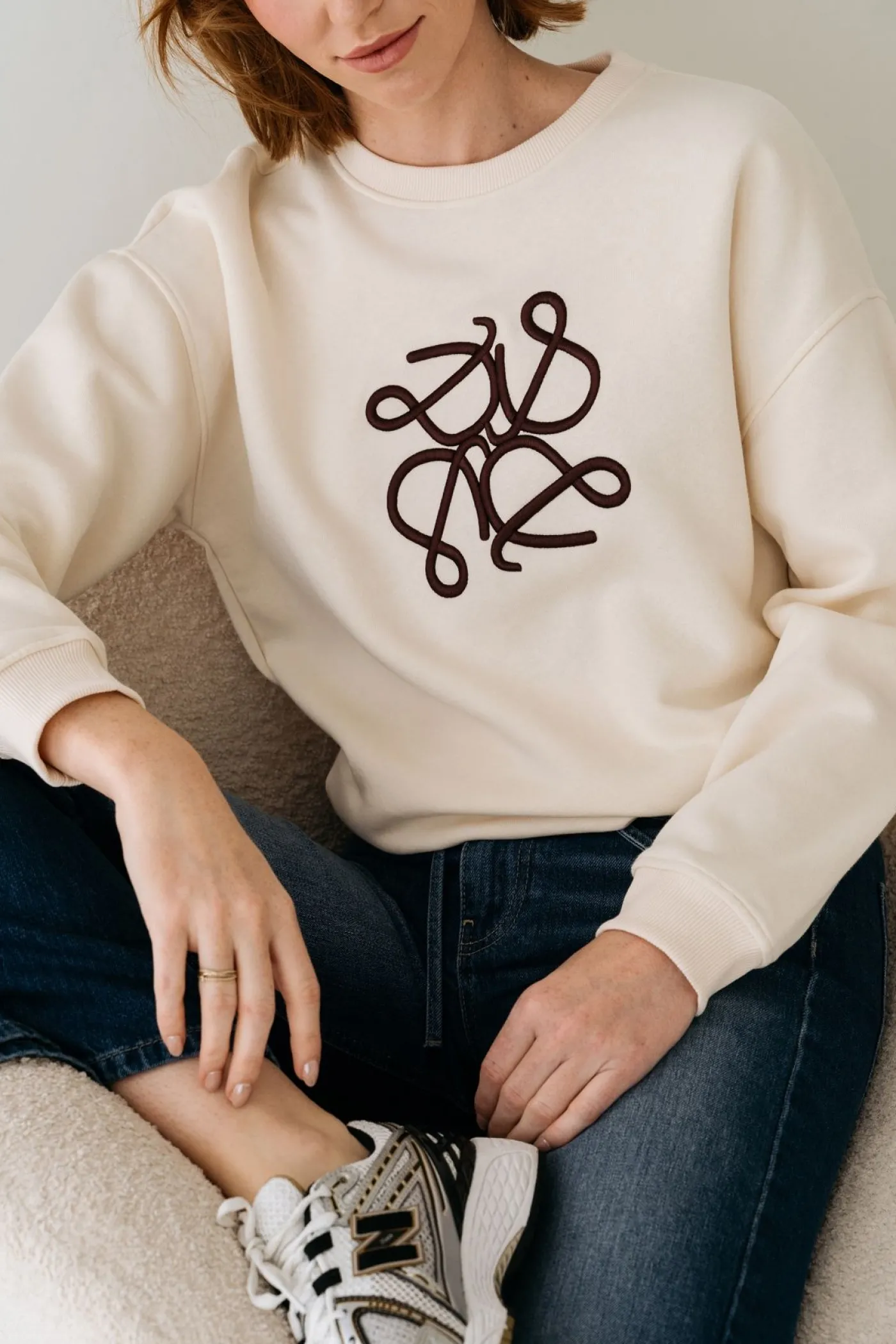 Op zoek naar een lekker zachte sweater voor het najaar? Dan is deze sweater zeker geschikt! Deze beige trui is gedecoreerd met geborduurde ‘&’ tekens in het diep bruin. Combineer deze trui met een jeans voor een casual look.