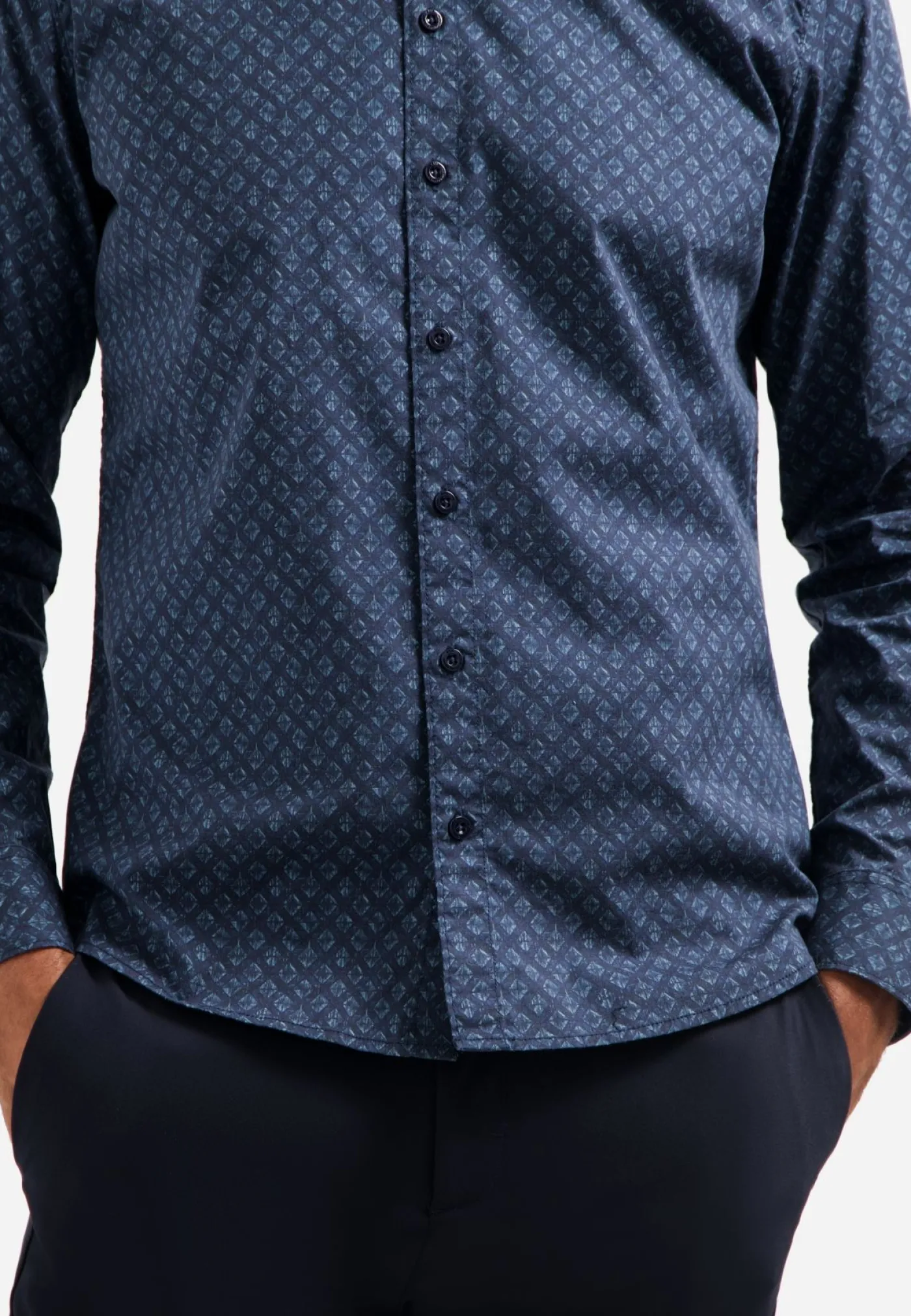 Deze donkerblauwe blouse van No Excess is een echte eyecatcher dankzij het stijlvolle ruitenpatroon. Het comfortabele materiaal voelt zacht aan op de huid en zorgt voor een perfecte pasvorm. Combineer hem makkelijk met een jeans voor een casual look of draag hem met nette pantalons voor een chique uitstraling. Dankzij het tijdloze design is deze blouse een veelzijdige toevoeging aan je garderobe. Een must-have voor iedere modebewuste kledingkast.