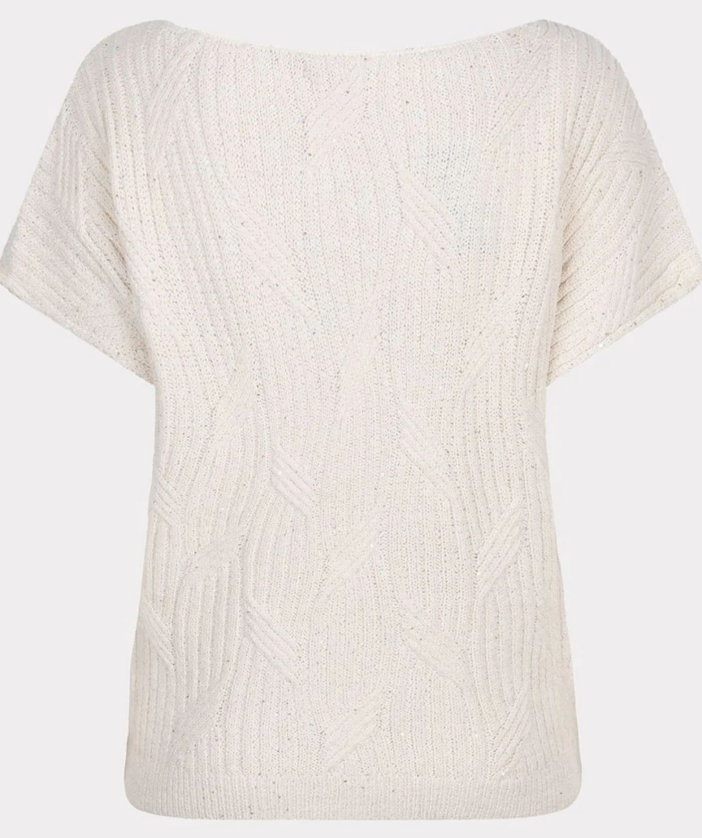 Beige korte mouwen top van het merk Esqualo. Dit item heeft een v-halsje en kapmouwtjes. Het item is voorzien van kleine pailletten waardoor er een glinstering ontstaat. Dit item kan leuk gecombineerd worden met een jeans en een jasje.