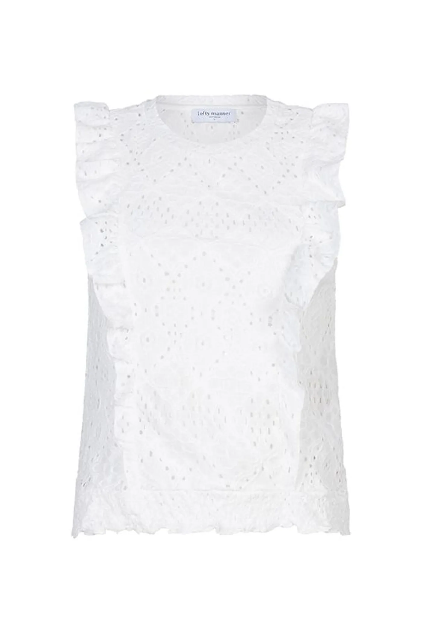 Zomerse broderie top van het trendy merk Lofty Manner. De top is mouwloos, doorzichtig en heeft een elastische band aan de onderzijde. Dit zorgt ervoor dat de top erg comfortabel draagt. Combineer de top met een broek of short van Lofty Manner. Check onze andere items van Lofty!