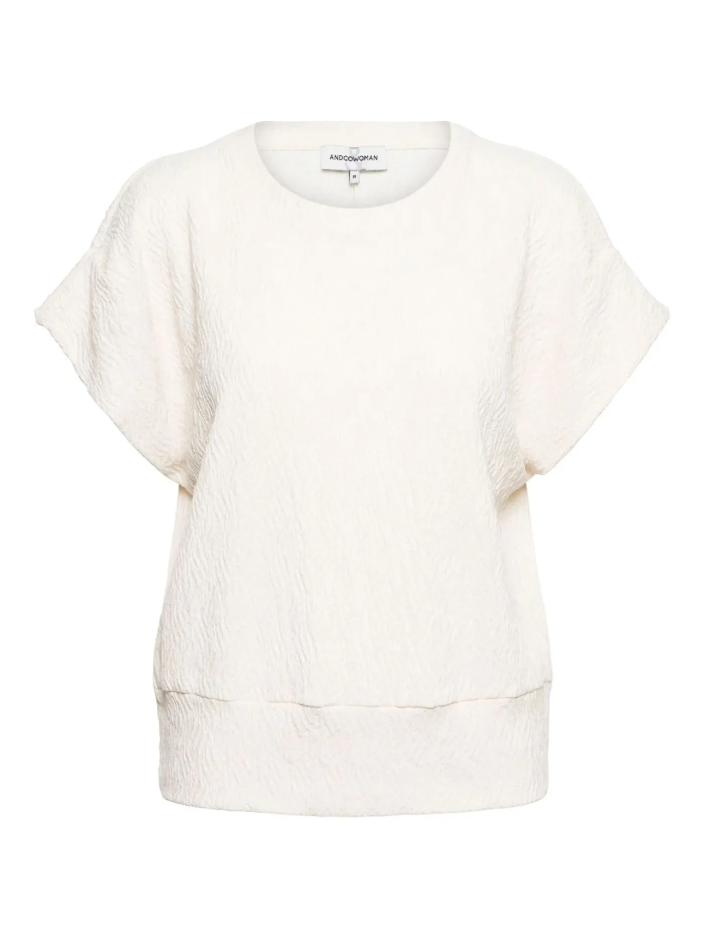 Dit leuke t-shirt is van het merk &Co Woman. Het t-shirt heeft een ronde hals en korte mouwen. In de stof zit een werkje waardoor de stof niet helemaal glad is. Dit geeft een speels effect. Je kunt deze top dragen op een jeans maar ook op een pantalon. Het is dus een makkelijk item om te combineren en een musthave voor in elke kledingkast.
