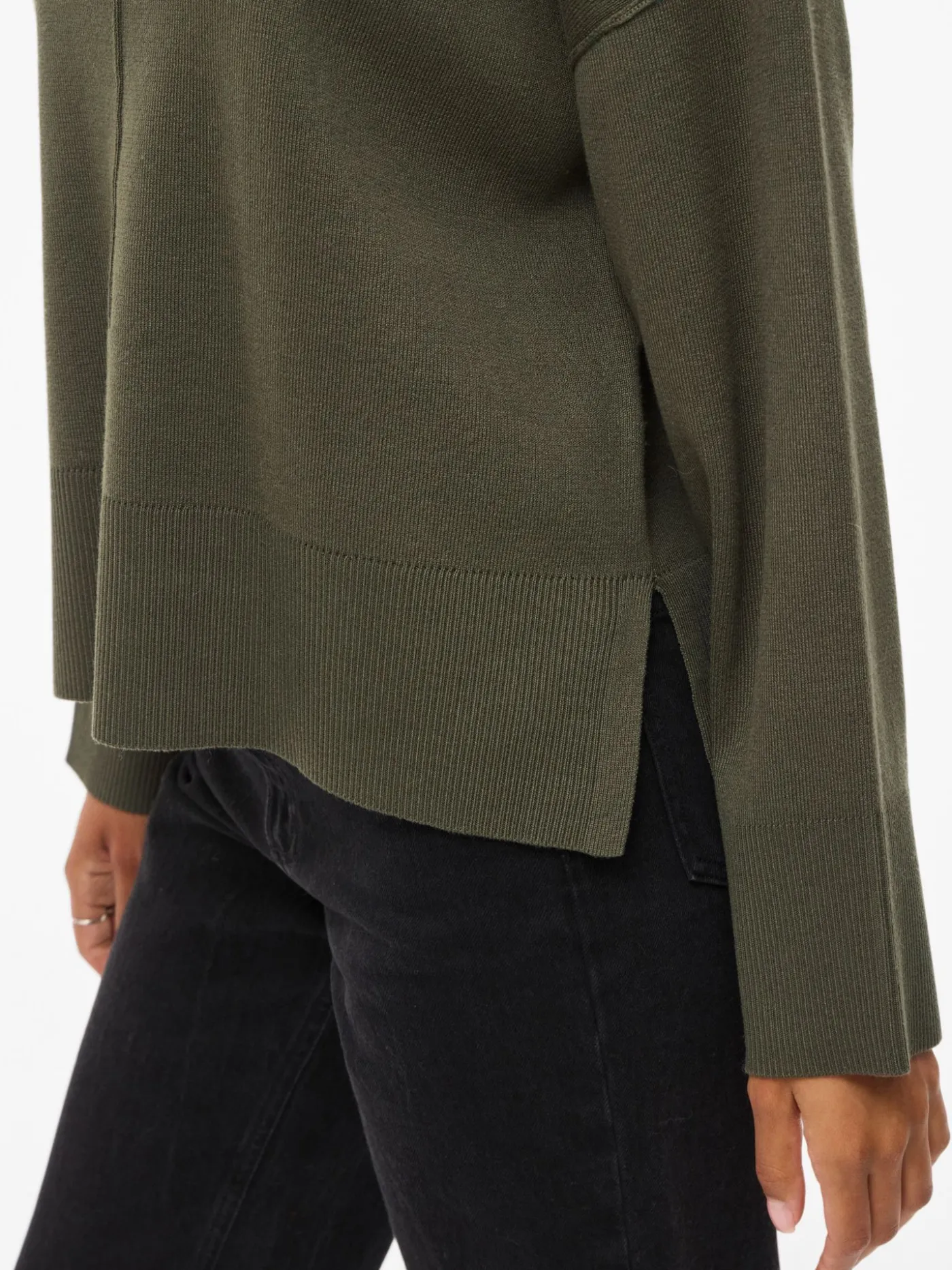 Deze groene trui van VILA biedt een perfecte mix van comfort en moderne stijl. De zachte stof voelt heerlijk aan en houdt je warm op koelere dagen. Het subtiele colletje geeft de trui een elegante, verfijnde uitstraling zonder té formeel te worden. De frisse groentint zorgt voor een modieuze en opvallende look die makkelijk te combineren is. Een ideaal item voor wie een stijlvolle, comfortabele trui zoekt met een vrouwelijke touch.