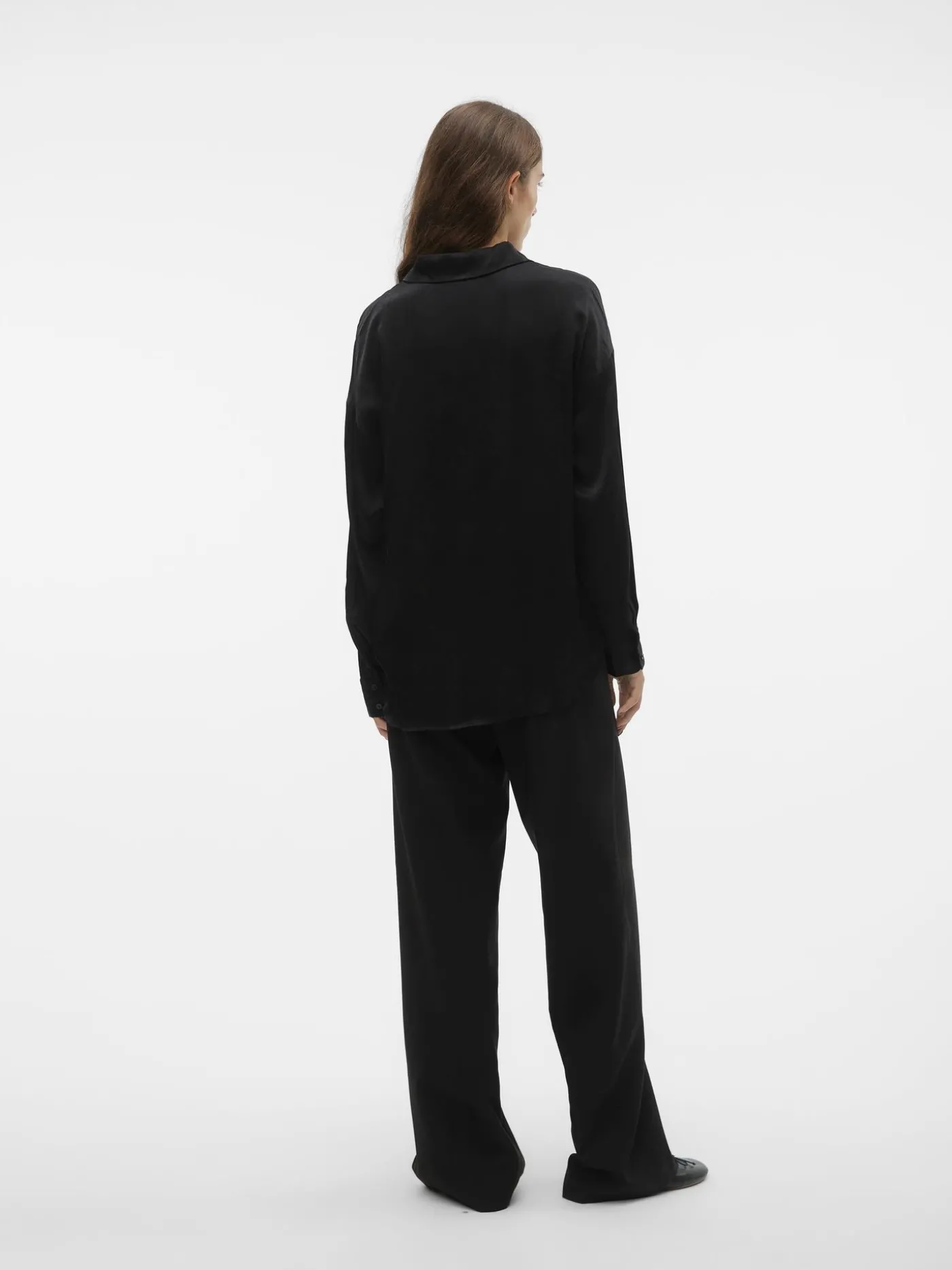 Deze zwarte blouse van Vero Moda heeft een knoopsluiting aan de voorkant en valt als een regular fit. Je kan het combineren op een spijkerbroek voor een alledaagse look of je combineert het met een flare en hakken voor een avondje uit.